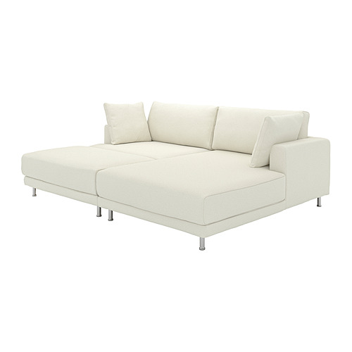 UPPÅKRA sofá 3 plazas con chaiselongue derecho y reposapiés, Axvall hueso / cromado