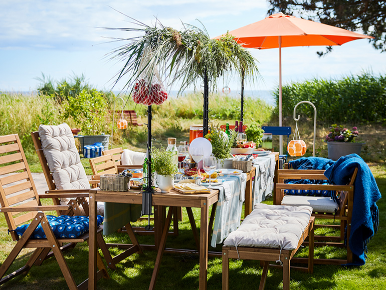 Transforma tu jardín en un centro veraniego con GRILLSKÄR y disfruta espacios sociales con sillas plegables y decoración vibrante.