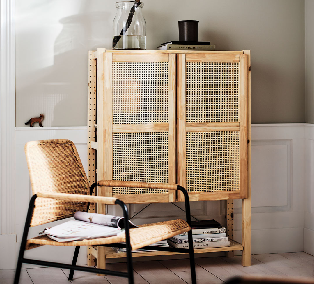 By their very nature, natural materials such as wood and certain textiles can make a space feel warmer. To create a feel with a bit more edge or interest, consider choosing pieces that mix materials, like the cool steel and warmer rattan of this armchair. The juxtaposition is both attractive and intriguing.