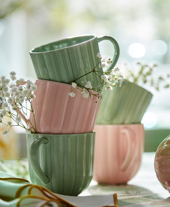 With a few creative touches, cheerful patterned tablecloths, pastel-coloured cups and items made from natural materials such as rattan or cotton, your table can turn any meal into a springtime celebration.