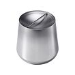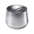 Recipiente redondo de metal plateado con tapa y ranura de ventilación para almacenamiento en la cocina.