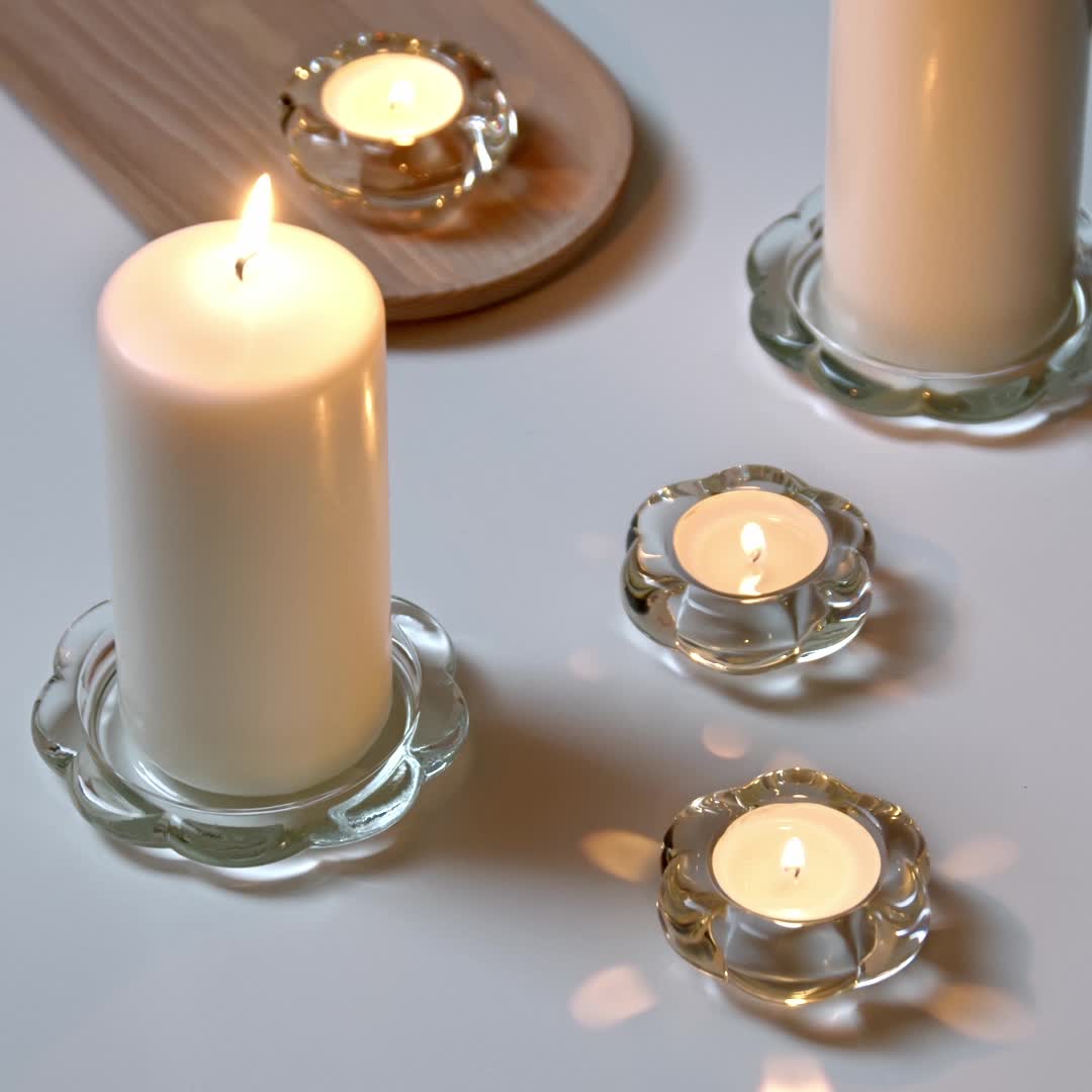 We made BLADFÅGEL candle dishes stackable, so you have room to store many when you're not using them.