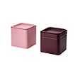 Lata rosa BLOMNING , pequeña, para café/té, apilable, metálica, cuadrada, con diseño elegante en bandeja de mimbre.