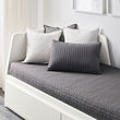 The daybed must be combined with two mattresses, 31½x78¾". They are placed on top of each other when you use the daybed as a single bed, and next to each other when you use it as a double bed.