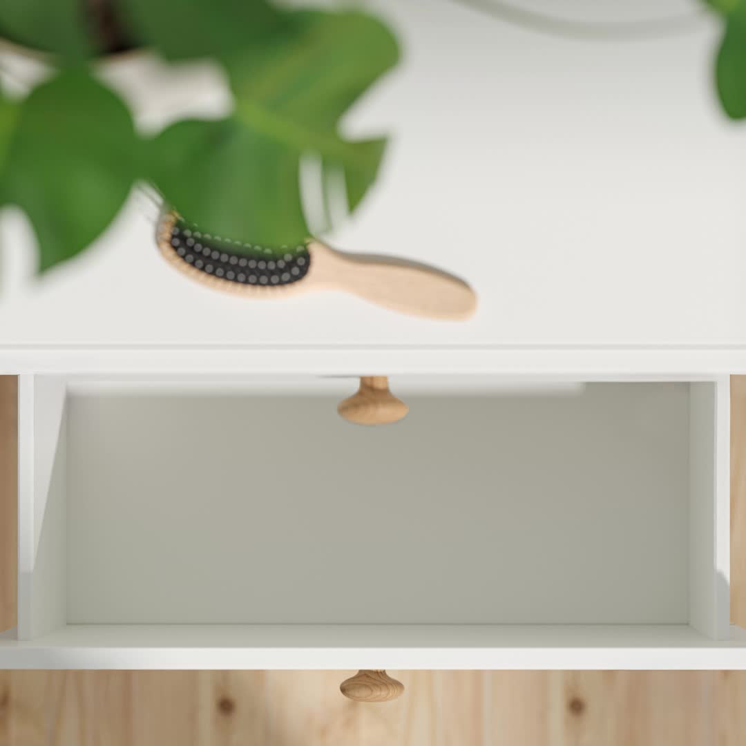 This product has a solution that helps you keep the drawers you’re not using closed. When you open one drawer, a mechanism keeps the other drawers closed. If you decide to open a second drawer without closing the first, the first drawer closes automatically. A little everyday magic for your socks and t-shirts.