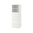 SMÅSTAD / PLATSA bookcase with 6 drawers, white, 60x55x180 cm