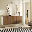 Un aparador elegante y práctico con almacenaje oculto tras las puertas y espacio para poner adornos en la parte superior. El panel superior con efecto nogal aporta calidez y oculta las uniones entre los tres armarios.