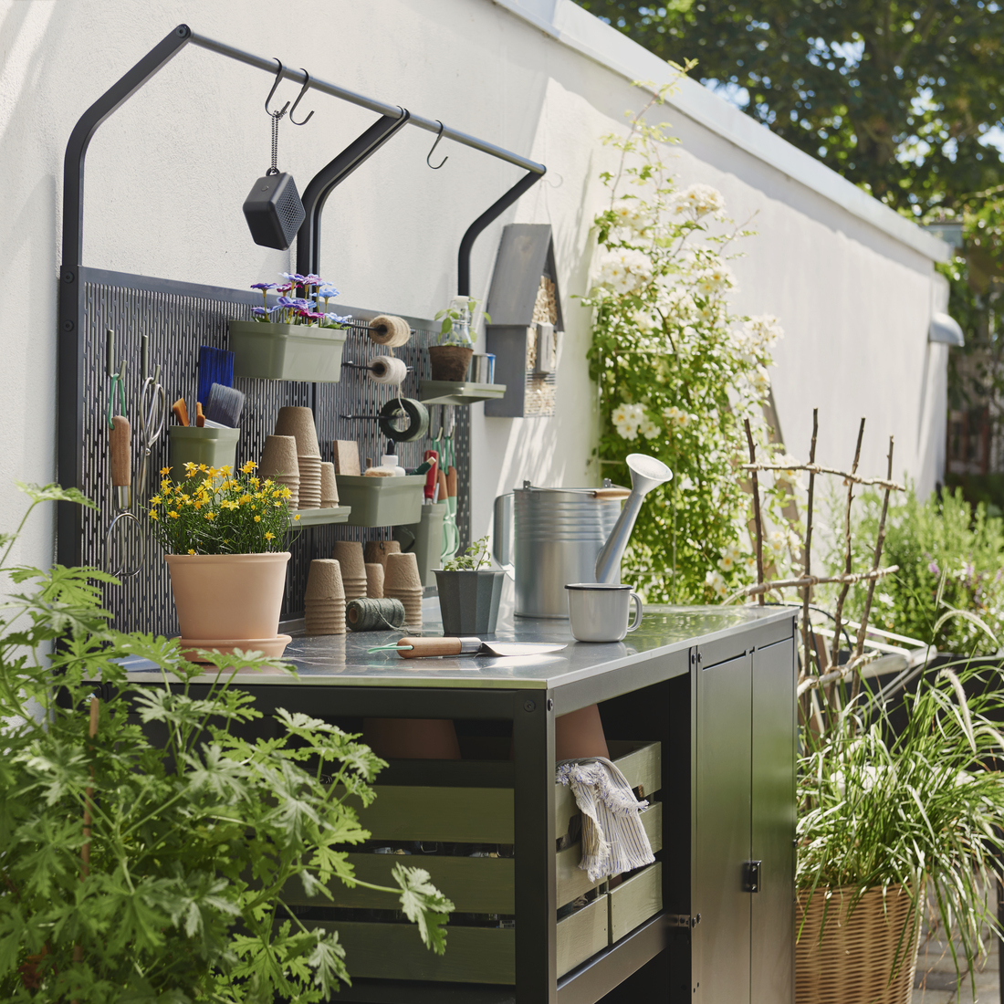 GRILLSKÄR isla de cocina con puertas, exterior / acero inoxidable, 86x61x176 cm