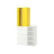 Este llamativo armario amarillo te ofrece mucho espacio de almacenaje, pero ocupa muy poco. Como la estructura y las puertas son compactas, es ideal para espacios pequeños.