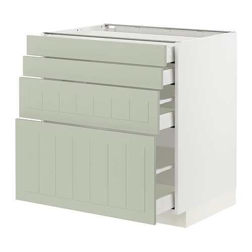 METOD / MAXIMERA armario bajo 4 cajones / 4 frentes, blanco / Stensund verde claro