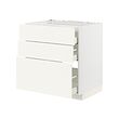 METOD / MAXIMERA armario bajo placa 3cajones3frentes, blanco / Vallstena blanco