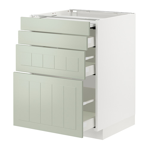 METOD / MAXIMERA armario bajo superf deslizante 3caj, blanco / Stensund verde claro
