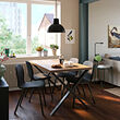 La mesa queda muy bonita con la amplia selección de sillas de diversos materiales y colores de la serie SKÅLSTA.