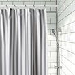 La estructura de cloqué de la cortina de ducha le confiere una superficie en relieve que da la sensación de suavidad.