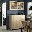 BESTÅ cabinet with drawer runner, soft-closing, LAPPVIKEN / SINDVIK white stained oak effect clear glass, 120x42x213 cm