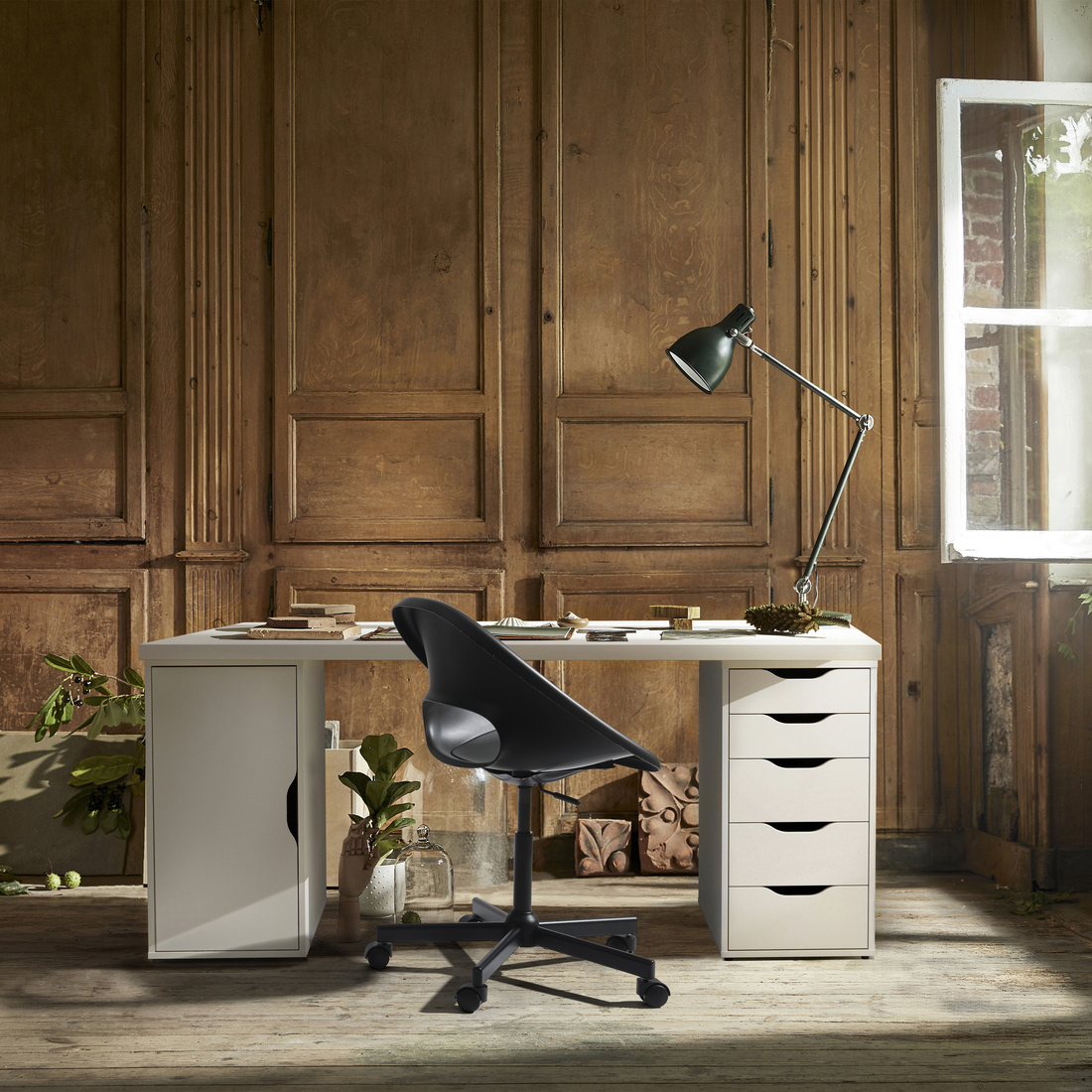 This desk has a generous surface and practical storage for binders, paper pads and other things you want close at hand. The timeless, simple design blends in everywhere and with most styles.
