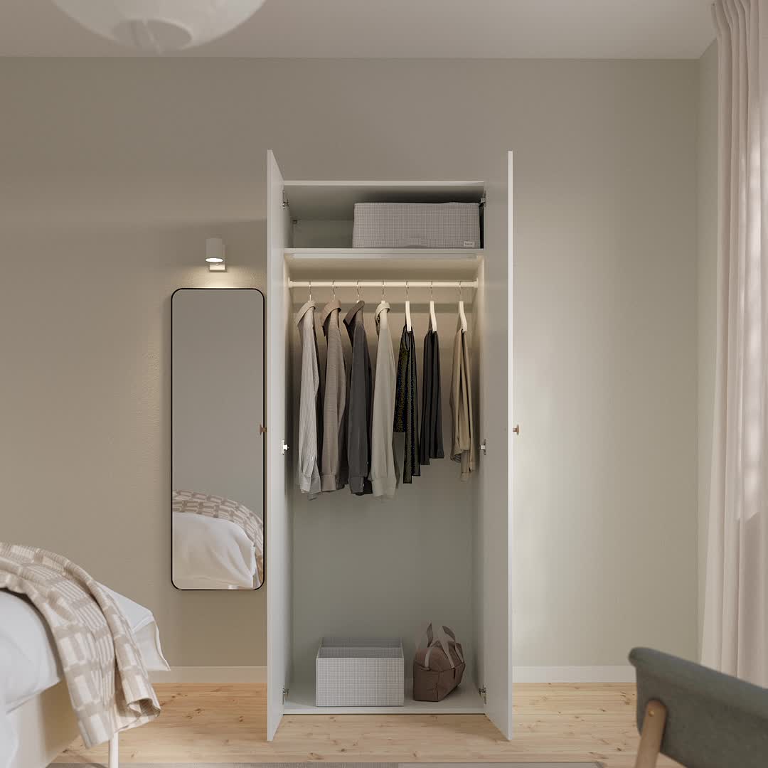A narrow door takes up less room when opened, which is perfect in tight spaces – for example between a wardrobe and a bed or in a hallway.