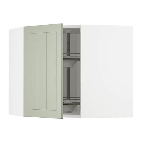 METOD corner wall cabinet with carousel, white / Stensund light green