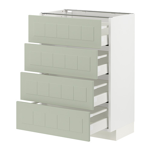 METOD / MAXIMERA base cab 4 frnts / 4 drawers, white / Stensund light green
