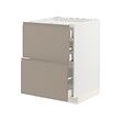 METOD / MAXIMERA base cabinet for cooktop / 2 fronts / 3 drawers, white / Upplöv matt dark beige