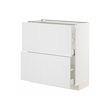 Mueble de cocina METOD blanco. Dos armarios con frentes ranurados verticalmente y dos cajones.