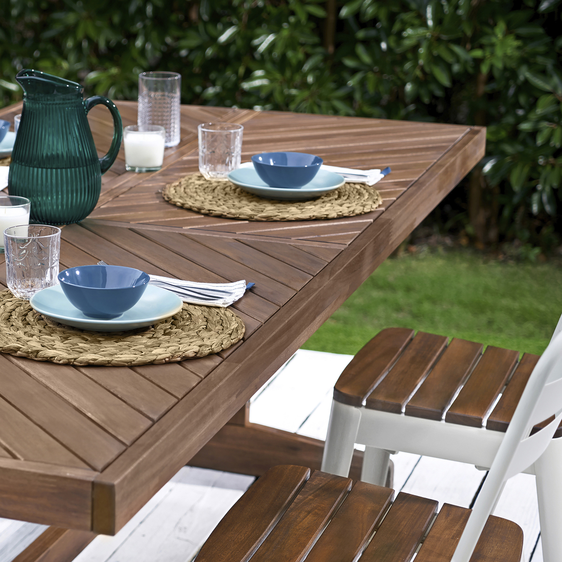 NORRMANSÖ table with 3 chairs and 2 benches, outdoor acacia / beige acacia, 200x100 cm