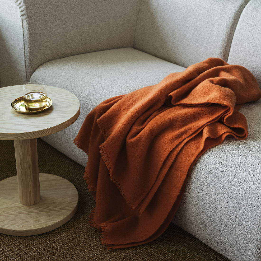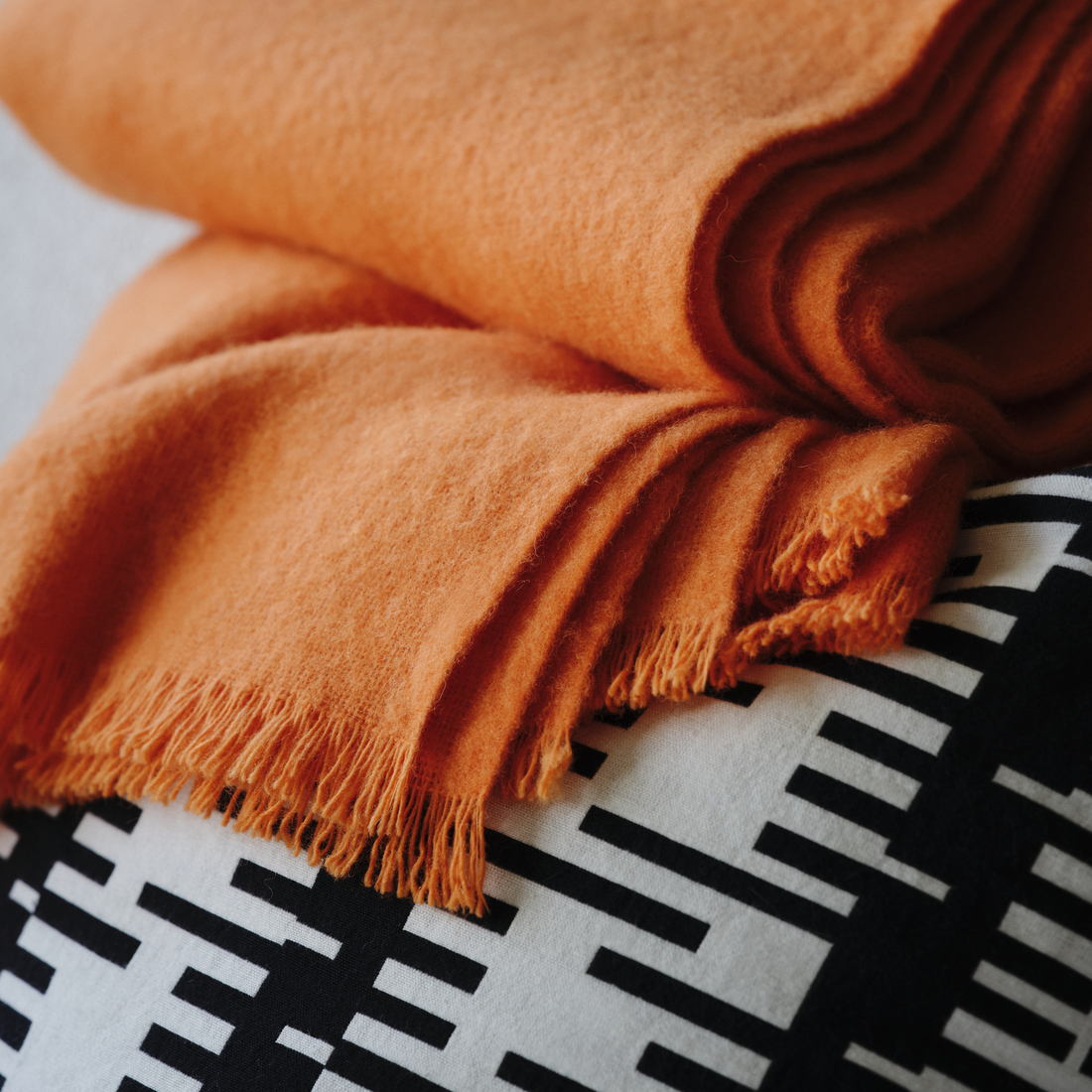 Warm and generously sized wool/merino wool throw in bright orange. Design by Paulin Machado as part of the STOCKHOLM 2025 collection where each piece is a celebration of Scandinavian design.