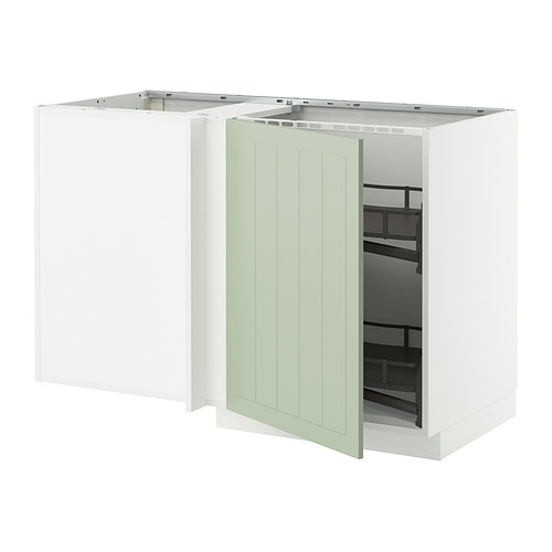 METOD armario bajo esquinero+ac extraíble, blanco / Stensund verde claro