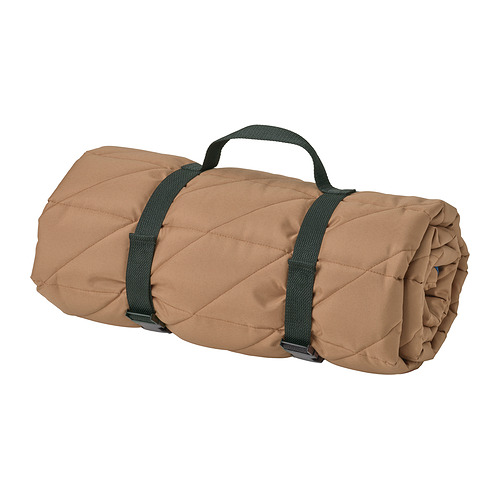 Llena una cesta de comida deliciosa, coge la manta de pícnic SOLUPPGÅNG y sal de casa. Tiene espacio para cuatro personas porque cuantos más, mejor. ¿La hierba está húmeda? No hay problema: el tejido repele el agua.