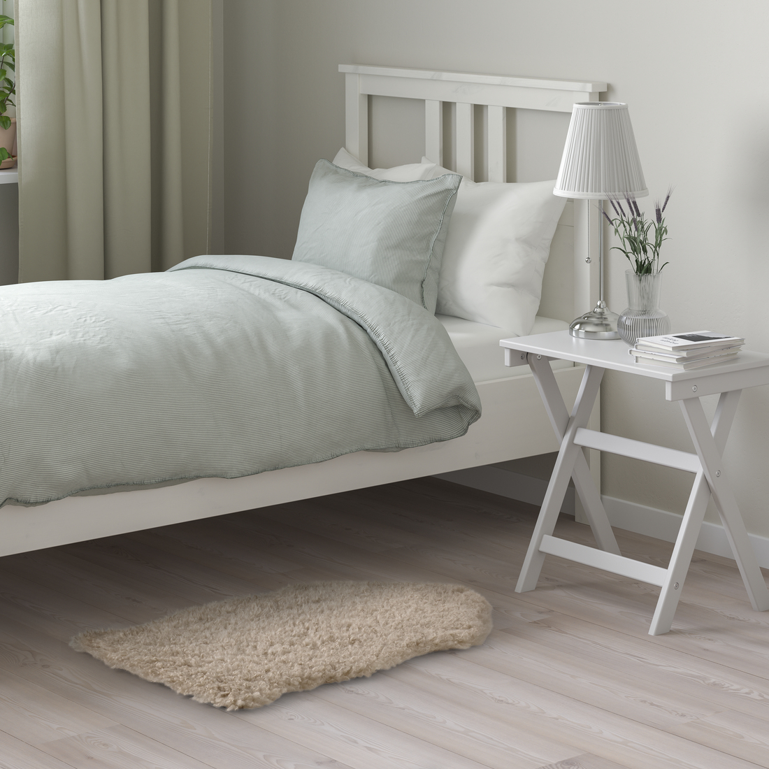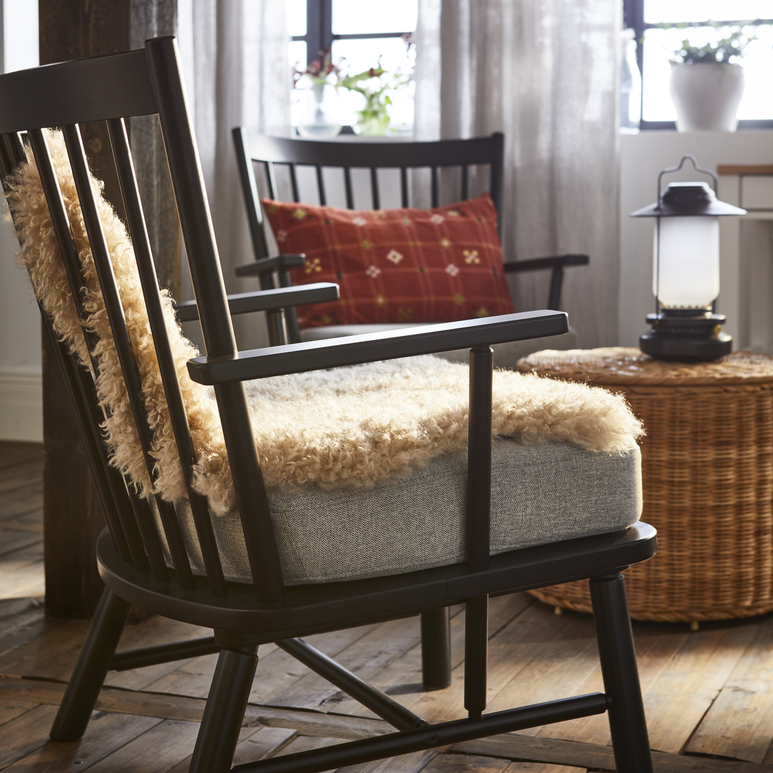 Estos suaves y brillantes rizos tienen el aspecto de una piel de oveja clásica y proporcionan la misma sensación de calidez y comodidad bajo los pies o en tu sillón favorito. La única diferencia es que SVINDINGE está hecha de botellas de PET recicladas y se puede lavar a máquina.