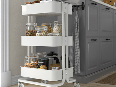 ¡De nada! Ideal en espacios pequeños, este carrito es fácil de mover cuando lo necesites gracias a sus ruedas. Así tendrás a mano en todo momento tus utensilios de cocina, y no te olvidarás de nada.