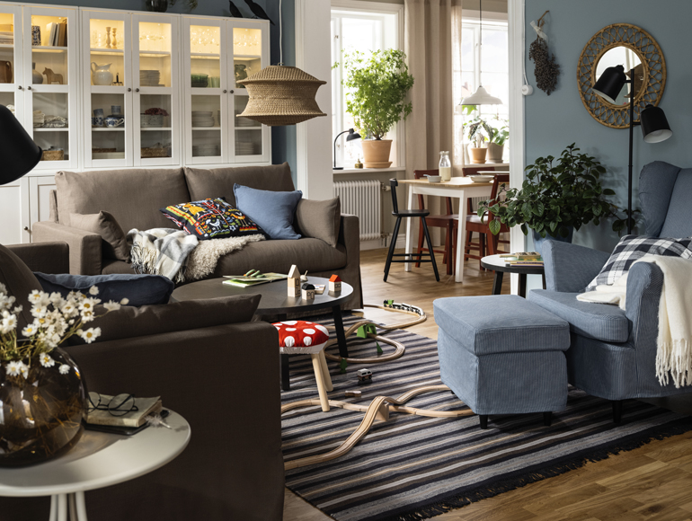 Here’s a traditional-style living room that works for the whole family, all day long. There’s space to play, cosy seating for cuddling up on and enough storage both to tidy toys away and show o your favourite collections.