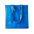 Bolsa de la compra reutilizable azul con asas amarillas y logotipo de copo de nieve blanco. Fabricado a partir de polipropileno y poliéster reciclados.