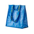 Bolso FRAKTA azul, texturizado, con patrones de asas amarillas, se mantiene en posición vertical con dos asas.