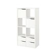 Estantería blanca KALLAX: 6 cubos, 3 con cajones, diseño moderno.