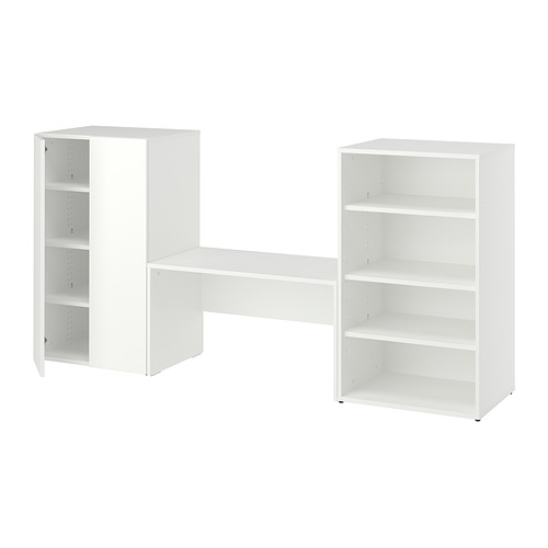 LASTARE storage combination, white / with bench