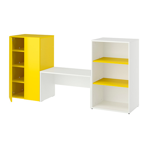 LASTARE storage combination, white yellow / with bench