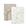 A set of two fitted sheets – one with cute little bunnies, and the other with nice, discreet dots. Both are made of soft and airy 100% GOTS-certified organic cotton that feels nice against the body.