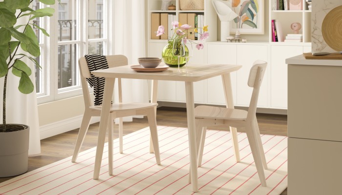 With LISABO table we use wood slats inside the table top and solid wood around the edges. This innovative construction makes the table super strong, so there is no need for support rails underneath. You’ll also find less material, such as less metal hardware. All this so you can enjoy great quality at an affordable price.