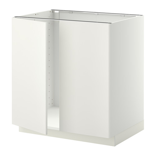 METOD base cabinet for sink with 2 doors, White / Veddinge white, 80x60 cm