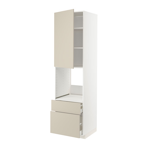 METOD / MAXIMERA high cabinet f oven+door / 2 drawers, white / Havstorp beige