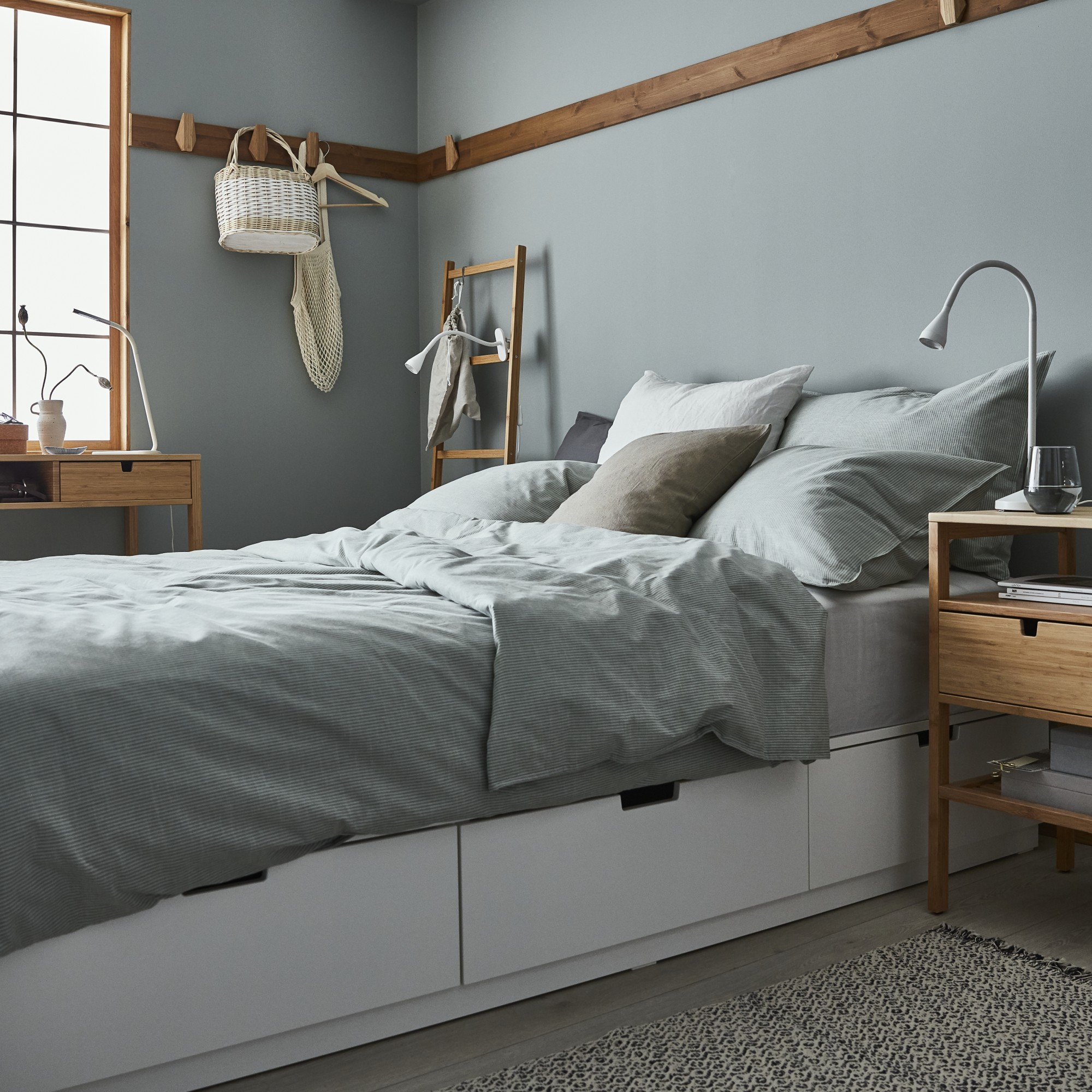 NORDLI bed frame is more than a comfortable bed. It’s also a spacious storage unit with 6 drawers that close silently and softly, without waking anyone. A practical solution for clothes, extra duvets and sweet dreams – all in a small space.