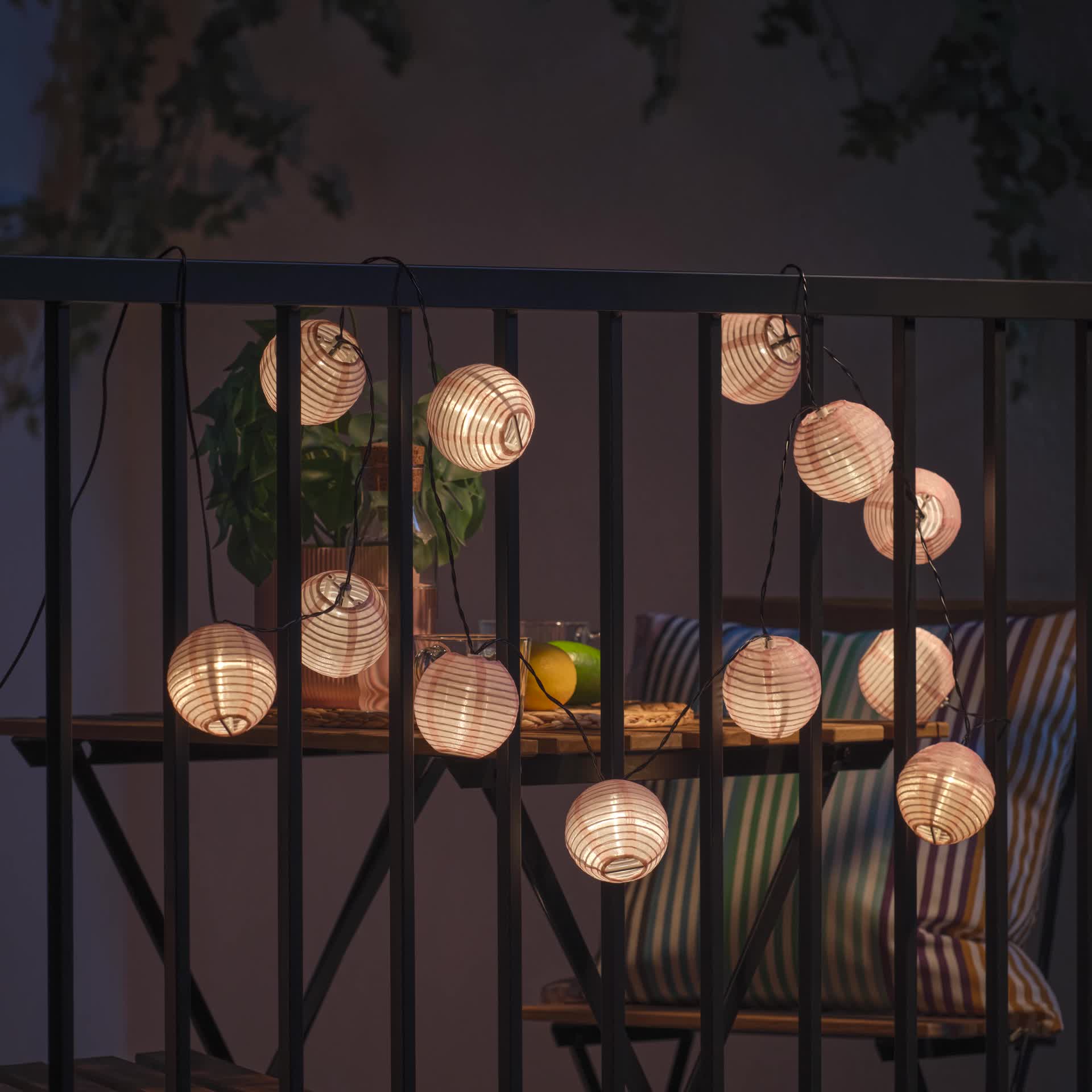 Light chains are perfect when you want to create a nice atmosphere. Easy to match with other lamps in the SOLVINDEN series in order to spread cosiness and light on the balcony, terrace or in the garden.
