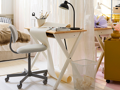 Turn your home into a functional and personal workspace. Discover desks, chairs, storage, and lighting to organize every detail.