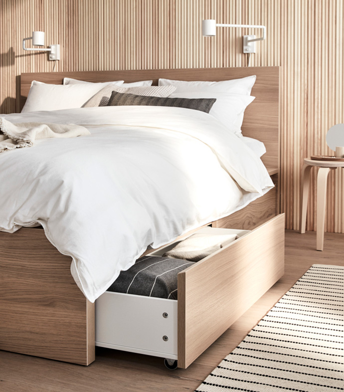 Si estás buscando muebles sencillos y funcionales para tu dormitorio, las camas MALM son la respuesta. Camas amplias y cómodas con un diseño de líneas rectas y un montón de espacio de almacenaje en su interior. Materiales naturales y acabados en diferentes colores para que encuentres la que mejor se adapta a tu espacio.