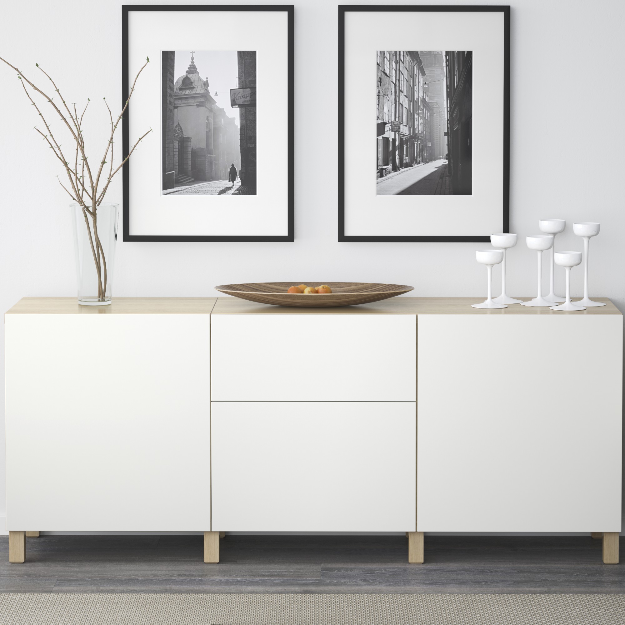 Las patas elevan la combinación BESTÅ del suelo, le dan un aspecto más ligero y permiten limpiar por debajo fácilmente.