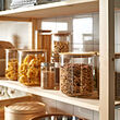 Almacenaje estiloso para alimentos secos. El vidrio transparente te permite ver el interior, mientras que la tapa de bambú le da un toque cálido y dinámico a la cocina. También es hermético para mantener los alimentos frescos durante más tiempo.