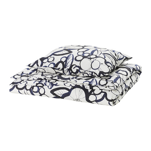 HÄRLIR funda nórdica con funda de almohada, blanco negro / azul motivo floral