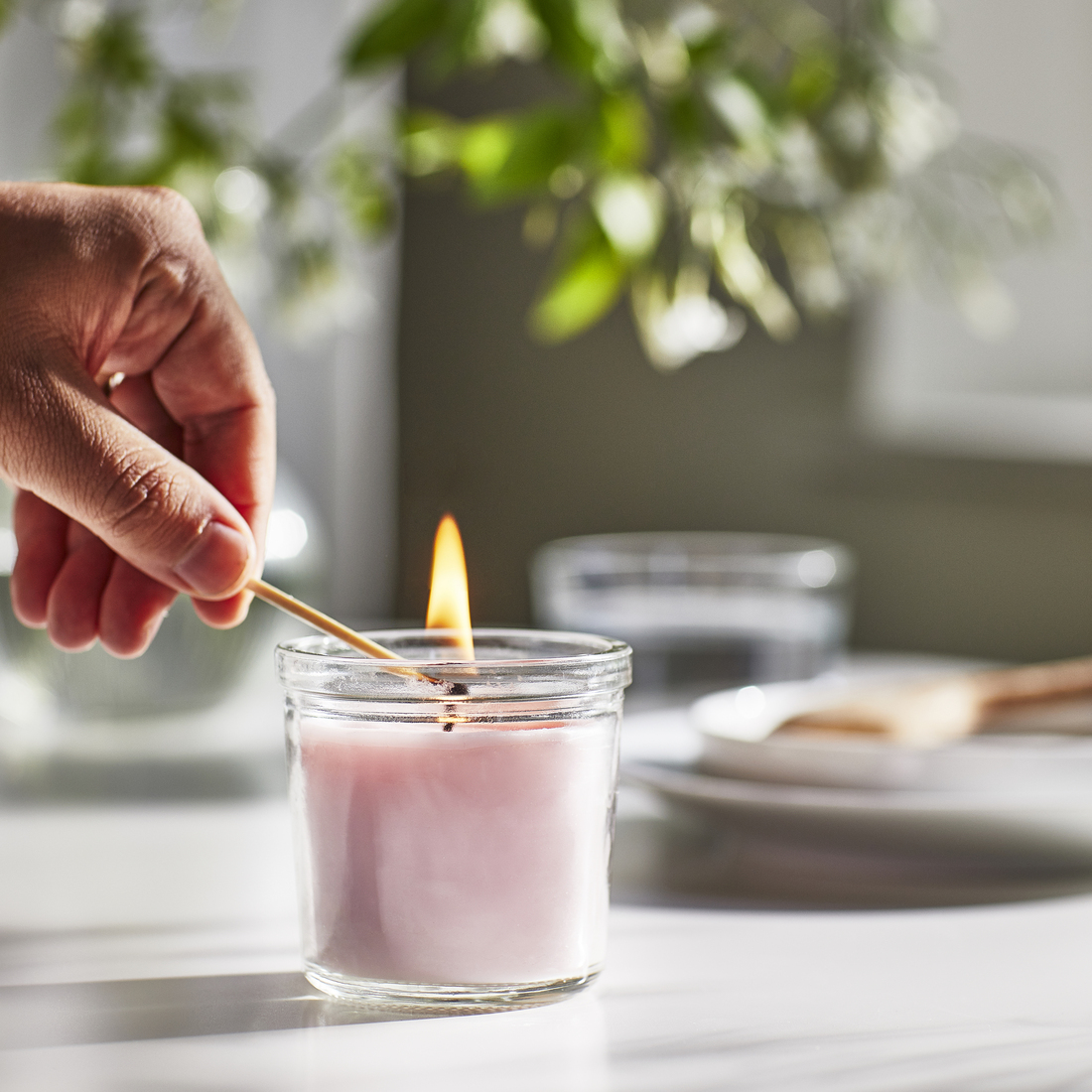 vela aromática en vaso, jazmín, 20 horas, rosa, Ø7 cm