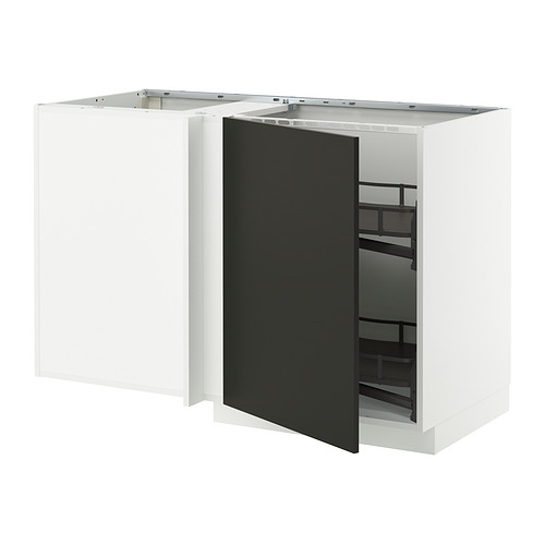 METOD armario bajo esquinero+ac extraíble, blanco / Nickebo antracita mate